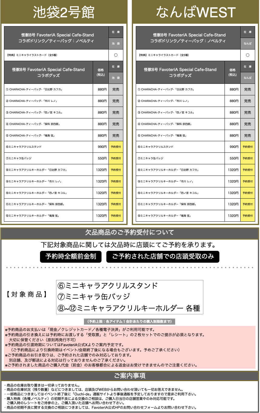 ・その他、店舗ご利用に関するご案内についてはFavoteriA公式Xより発信しておりますので合わせてご確認お願いします。