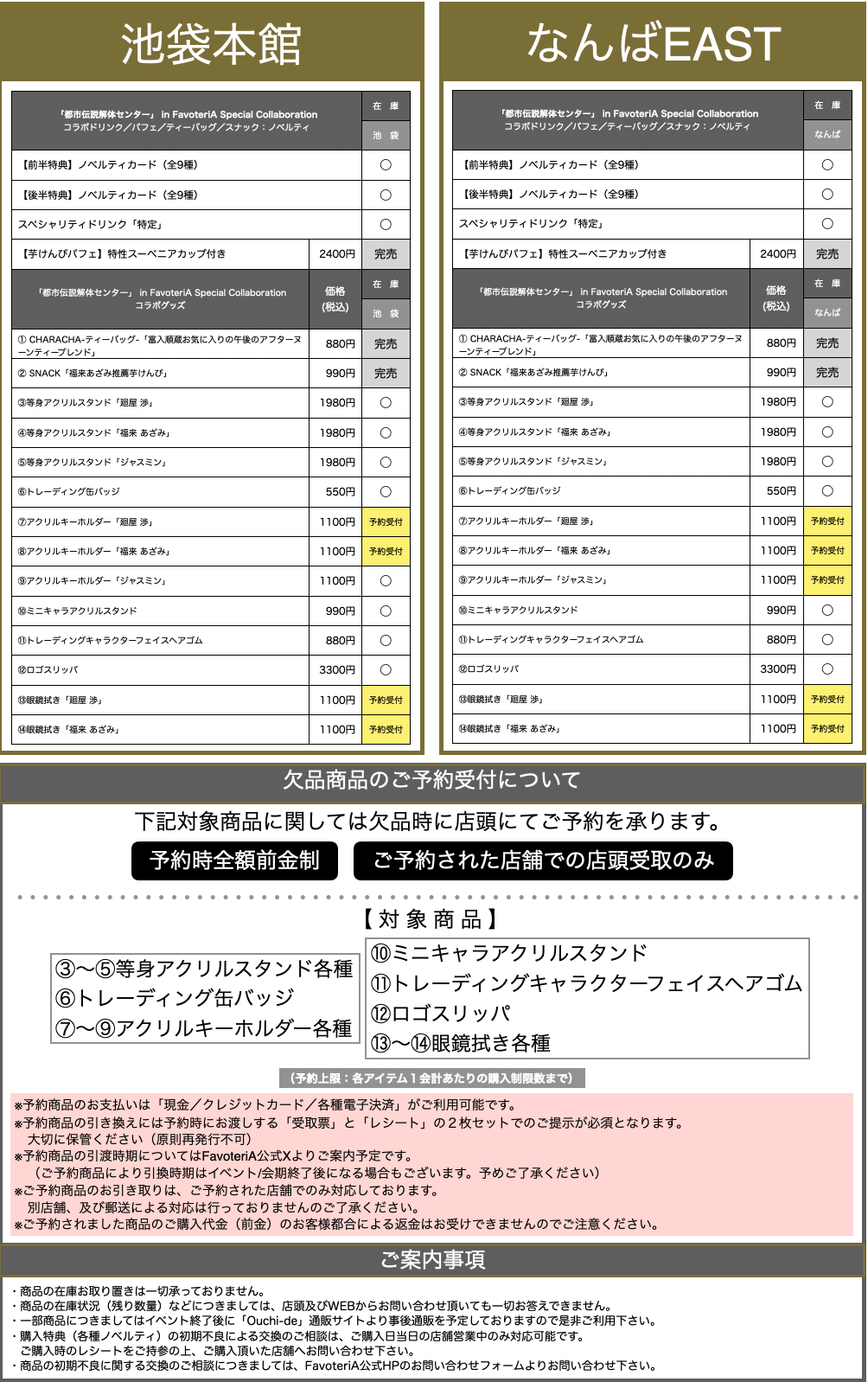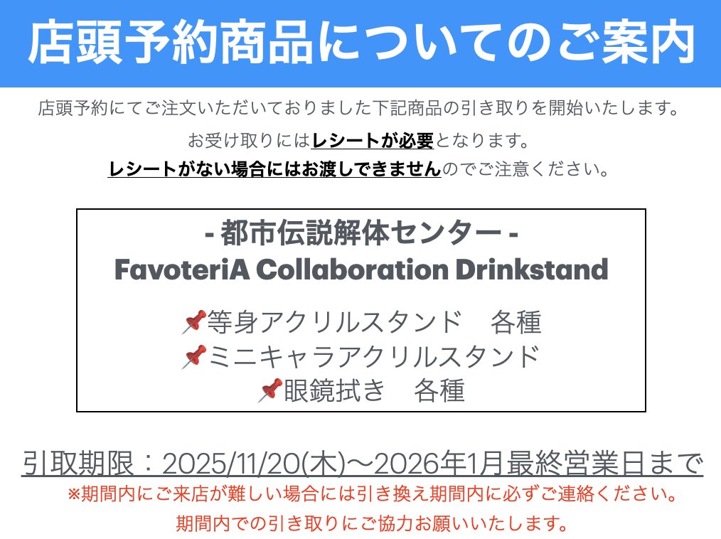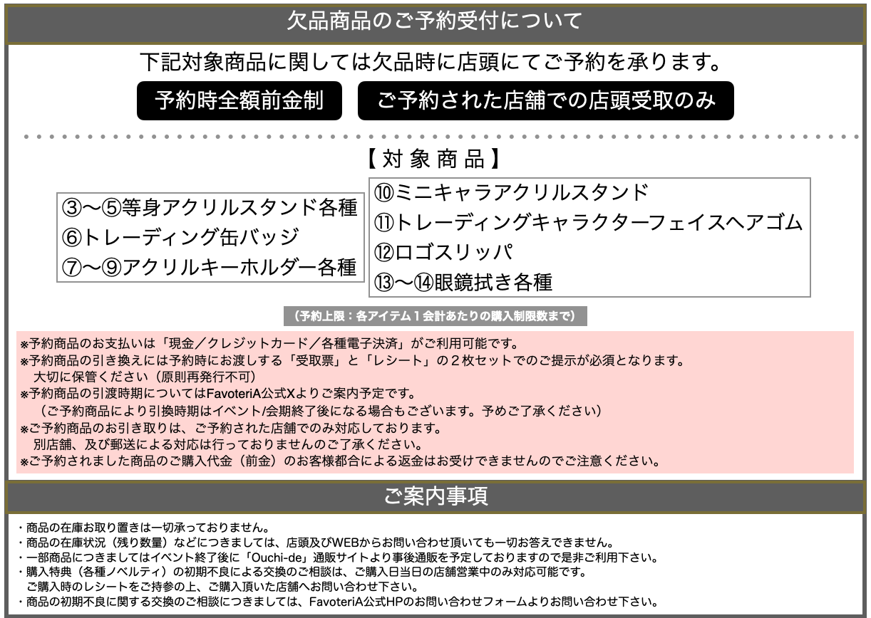 ・その他、店舗ご利用に関するご案内についてはFavoteriA公式Xより発信しておりますので合わせてご確認お願いします。