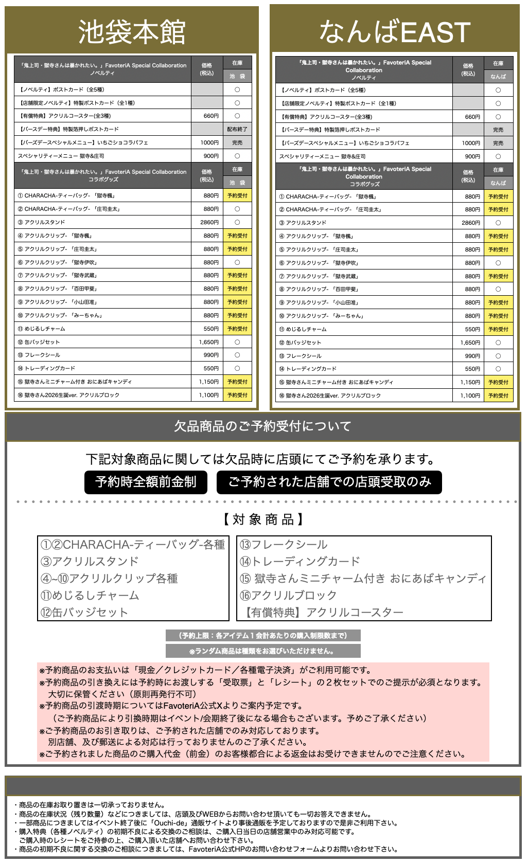 ・その他、店舗ご利用に関するご案内についてはFavoteriA公式Xより発信しておりますので合わせてご確認お願いします。