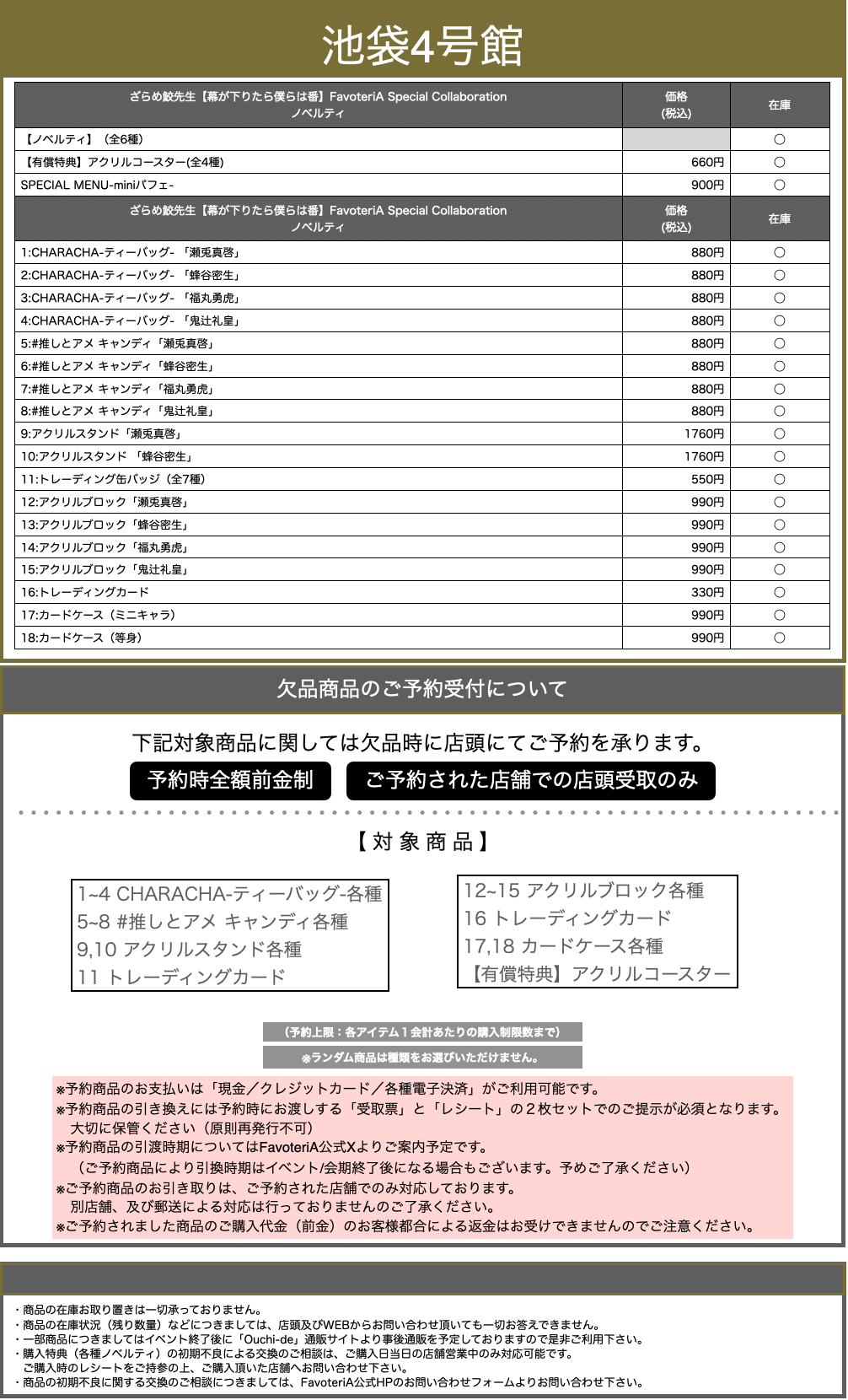 ・その他、店舗ご利用に関するご案内についてはFavoteriA公式Xより発信しておりますので合わせてご確認お願いします。